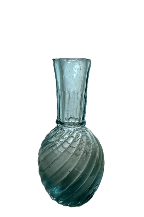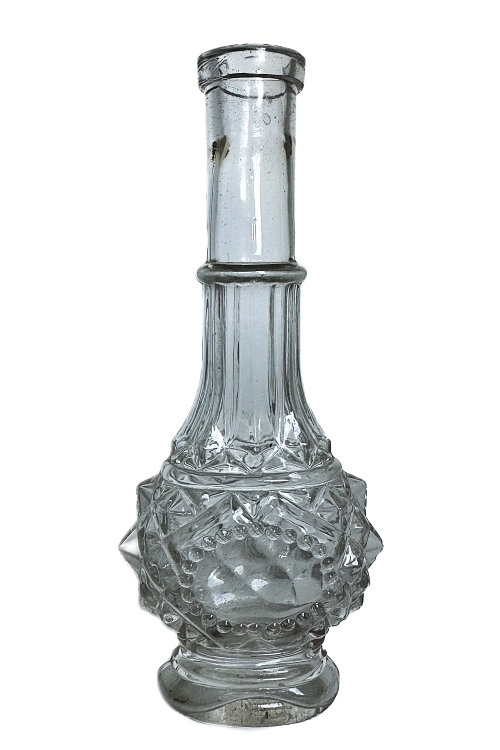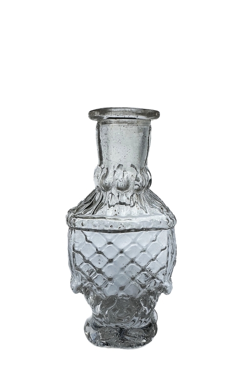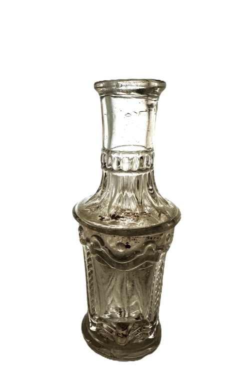 I nedenstående galleri ses flasker som vurderes at være produceret i perioden 1850’erne – 1870’erne og udgør således ret tidlige flasker fra danske glasværker. Produktion af disse flasker skete over en tidsperiode, og jeg har kendskab til nogle af disse flasker som er blæst i forskellige forme, med tegn på aldersforskelle inden for ovennævnte produktionsperiode. Disse flasker har primært været anvendt som parfumeflasker.