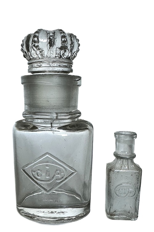 Aggerbeck’s Sæbe og Parfumerifabrik anvendte andre små-flasker til deres produkter og Christen Iversen Aggerbeck fik da også fremstillet flasker med påskriften CIA. Produktbetegnelsen CIA er registreret i 1920 og må formodes at være en varebetegnelse som refererer til forbogstaverne i Christen Iversen Aggerbeck’s navn. I galleriet nedenfor ses en meget lille firkantet flaske med rummålet 5 ml og højde ca. 40 mm samt en flaske med glasprop og ovalt tværsnit. Den lille flaske er anvendt til parfume, mens den større flaske har fundet anvendelse, fx til sæbe eller parfume. Begge disse flasker har påskriften CIA.