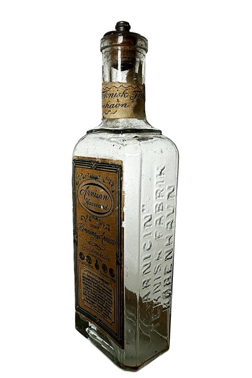 I galleriet nedenfor ses en flaske anvendt til ARNISAN HAARVAND – med Honning og Arnica, som det fremgår af flaskens frontetikette. Flasken er ca. 185 mm høj og har et rektangulært tværsnit med affasede hjørner. Lodret på flaskens smalle sider læses i relieftekst ”ARNICIN” TEKNISK FABRIK KØBENHAVN.
