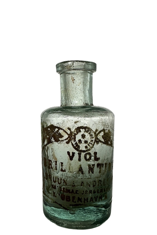 Flasken med silketryk er fra/efter sammenlægningen i 1898, sandsynligvis en flasker fra perioden 1898 – 1910. Af teksten i silketryk fremgår, at den har været anvendt til VIOL BRILLANTINE, og at begge navne, altså Bruun & Andresen samt Valdemar Jørgensen fremgår af silketrykket, viser netop at flasken er fra/efter sammenlægningen af de to, tidligere selvstændigt virksomheder. På modstående side af silketryk-teksten ses påskriften VALDEMAR JØRGENSEN KJØBENHAVN som på de to øvrige flasker i galleriet.